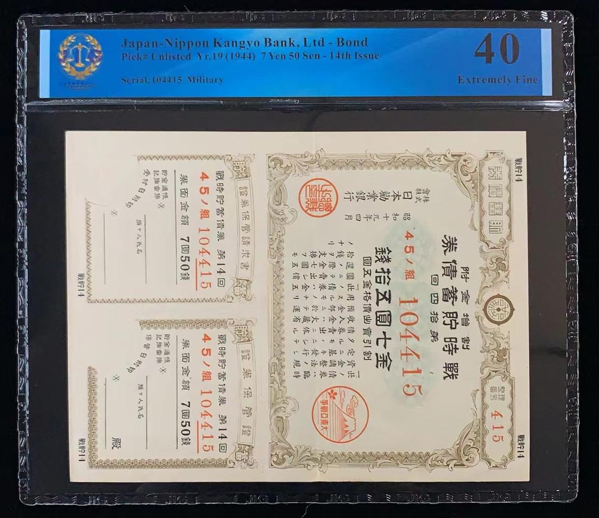 日本 / 日本劝业银行-债券, 7 日元 50 日元 Yr.19 (1944)- 第十四次发行