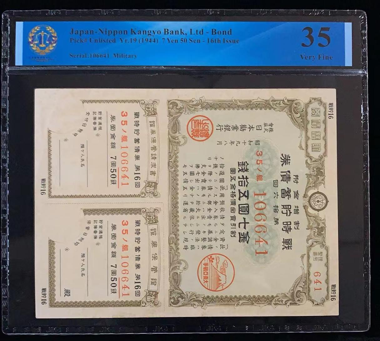 日本 / 日本劝业银行-债券, 7 日元 50 日元 Yr.19 (1944)- 第十六次发行