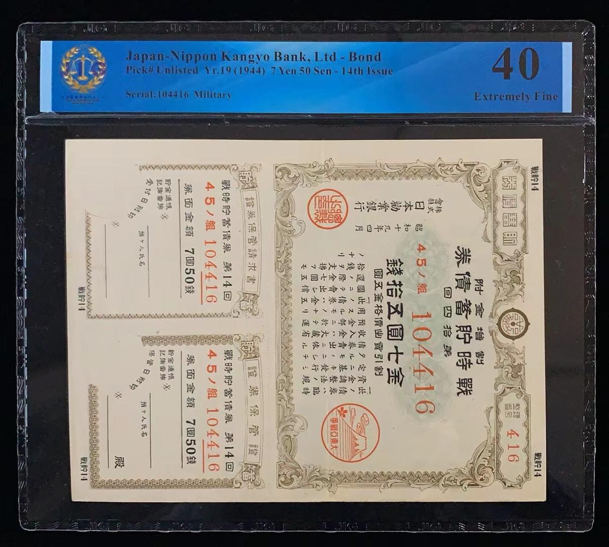 日本 / 日本劝业银行-债券, 7 日元 50 日元 Yr.19 (1944)- 第十四次发行