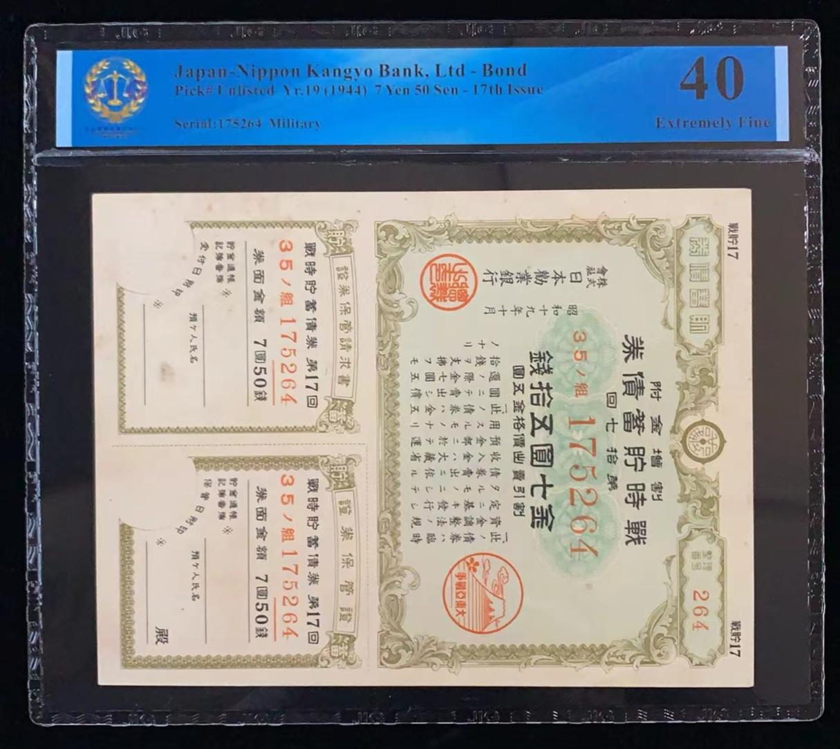 日本 / 日本劝业银行-债券, 7 日元 50 日元 Yr.19 (1944)- 第十七次发行
