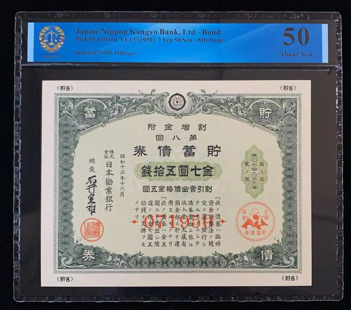 日本 / 日本劝业银行-债券, 7 日元 50 日元 Yr.13 (1938)- 第八次发行