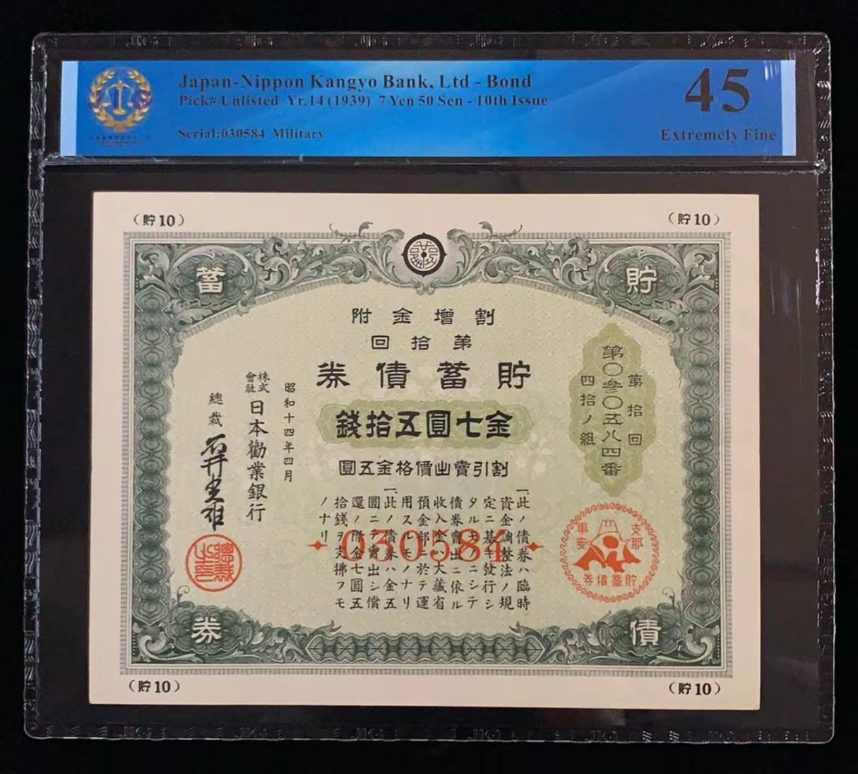 日本 / 日本劝业银行-债券, 7 日元 50 日元 Yr.14 (1939)- 第十次发行