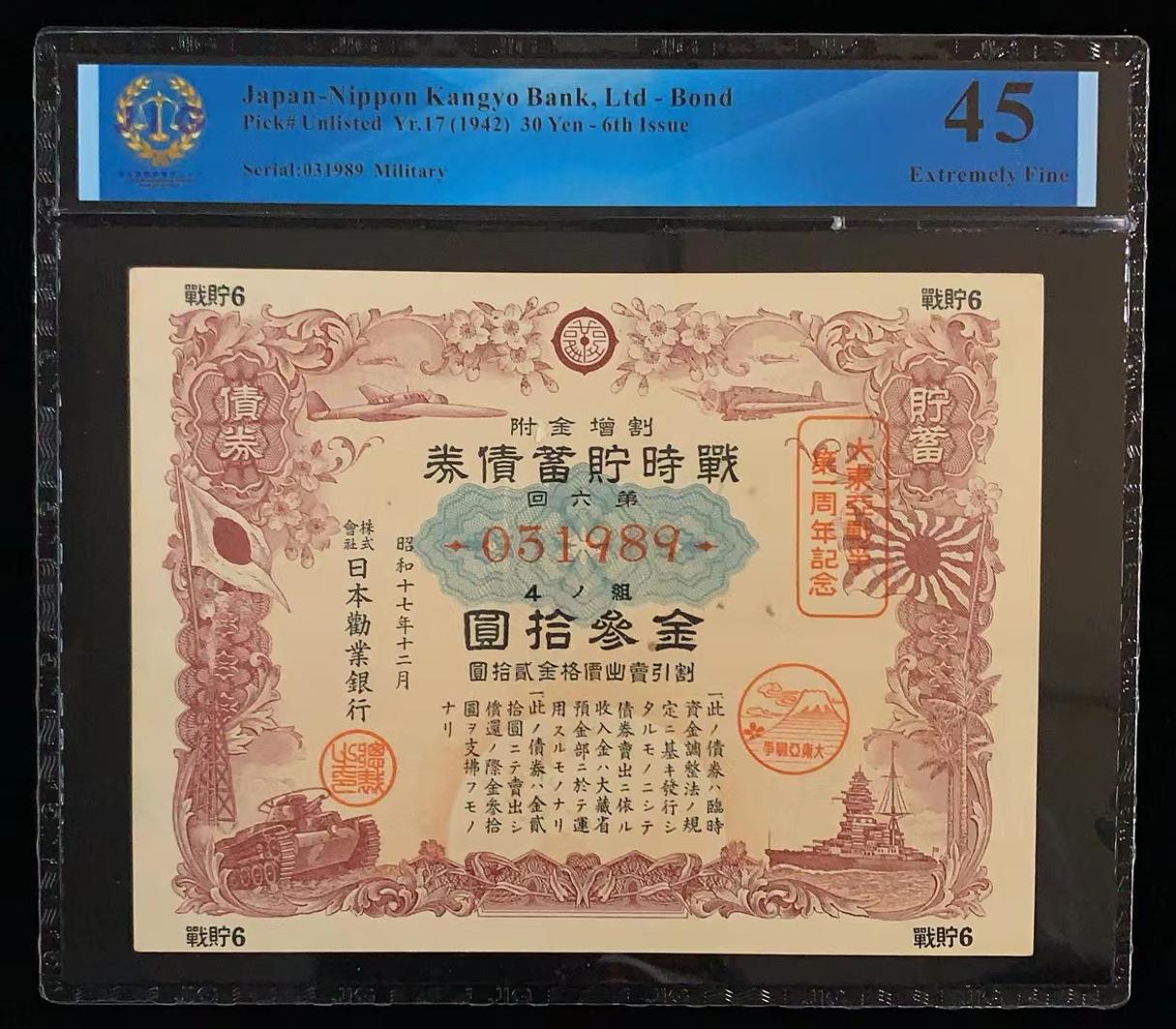 日本 / 日本劝业银行-债券, 30 日元 Yr.17 (1942)- 第六次发行