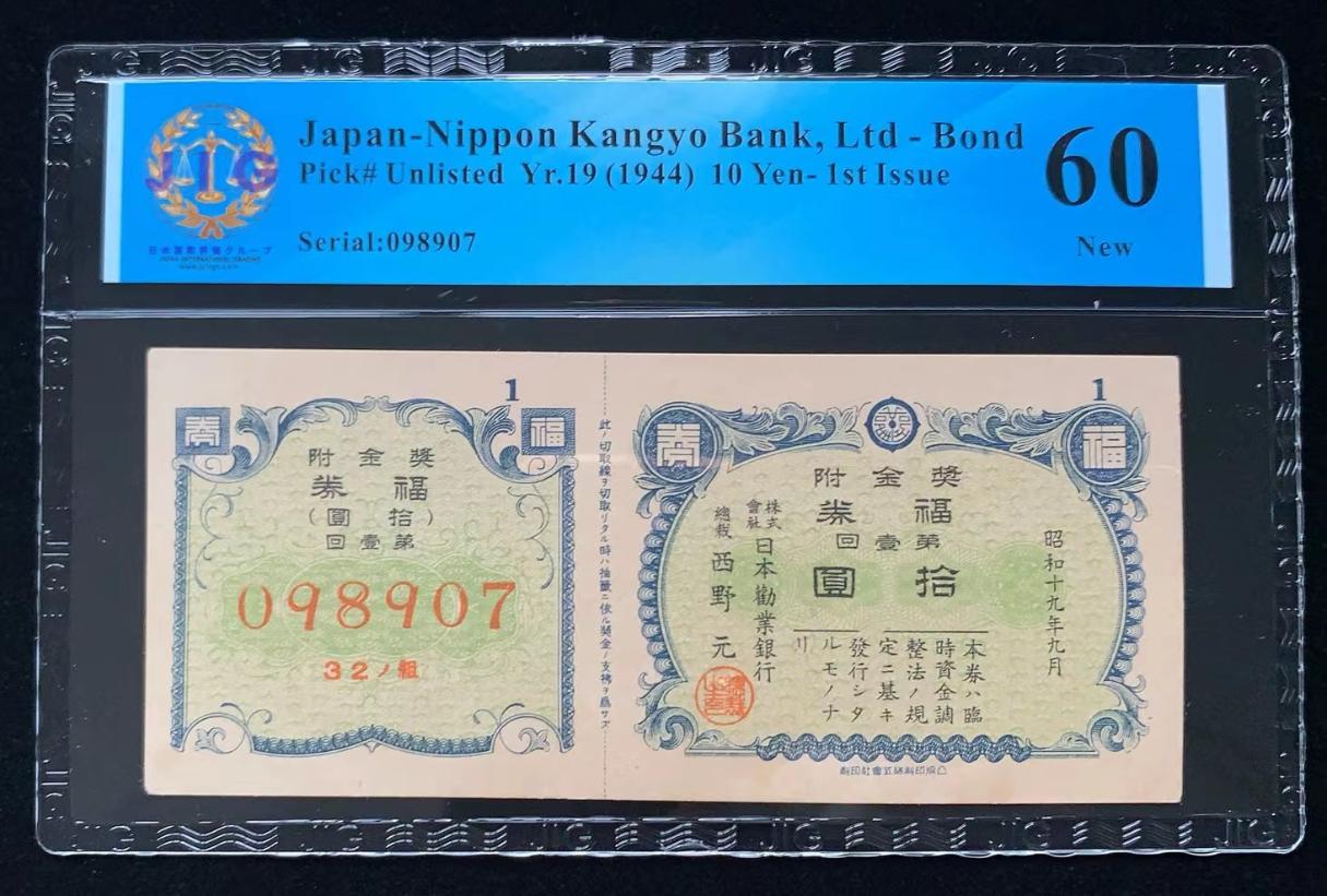 日本 / 日本劝业银行-债券, 10 日元 Yr.19 (1944)- 第一次发行