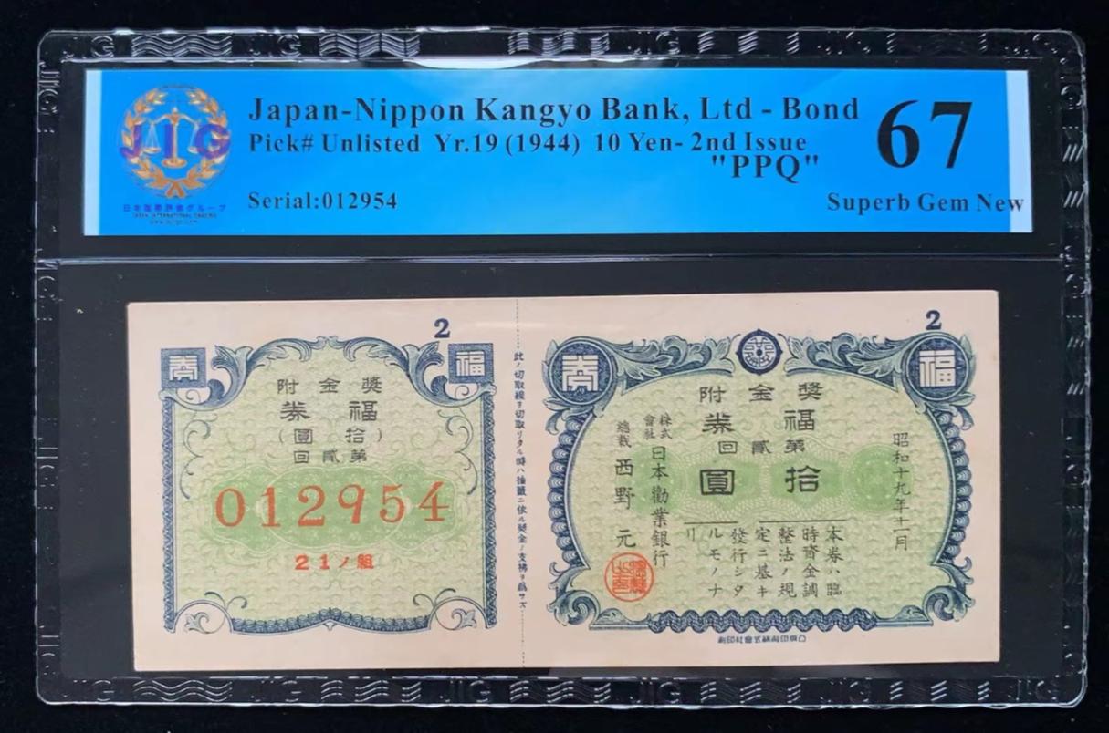 日本 / 日本劝业银行-债券, 10 日元 Yr.19 (1944)- 第二次发行