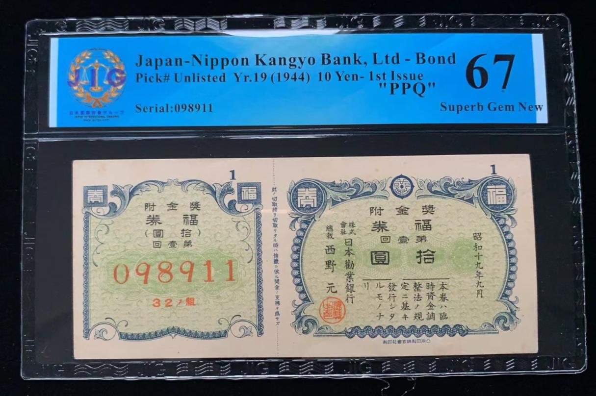 日本 / 日本劝业银行-债券, 10 日元 Yr.19 (1944)- 第一次发行