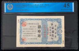 日本 / 日本劝业银行-债券, 1 日元 Yr.18 (1943)- 第十三次发行