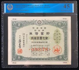 日本 / 日本劝业银行-债券, 10 日元 Yr.18 (1943)- 第九次发行