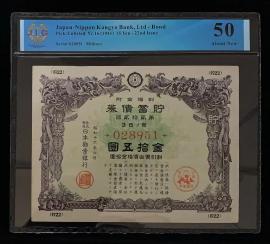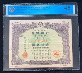 日本 / 日本劝业银行-债券, 15 日元 Yr.20 (1945)- 第十九次发行